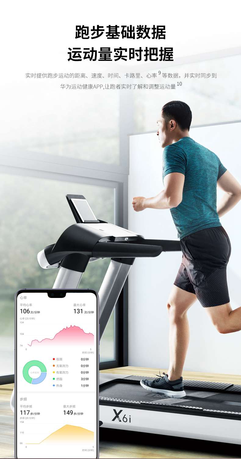 谈求吧跑步机-X6心率跑步机,可根据用户运动是实时心率,跑步机自动调节跑步速度、坡度等进行运动强度的调节,更科学;X6i华为版跑步机,可以通过连接华为运动健康APP,监测多种类型跑步数据。欢迎来电咨询~