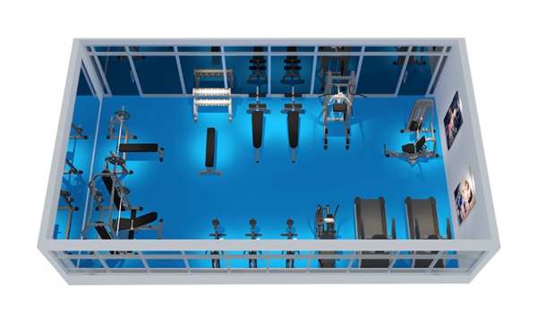 此方案要求面积不小于60平米,我们会根据您个人的实际情况和场地面积而定。此方案推荐小型健身工作室、单位健身房、酒店会所健身房、学校等健身房配置。