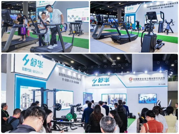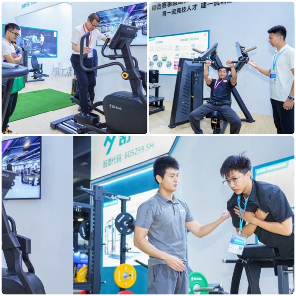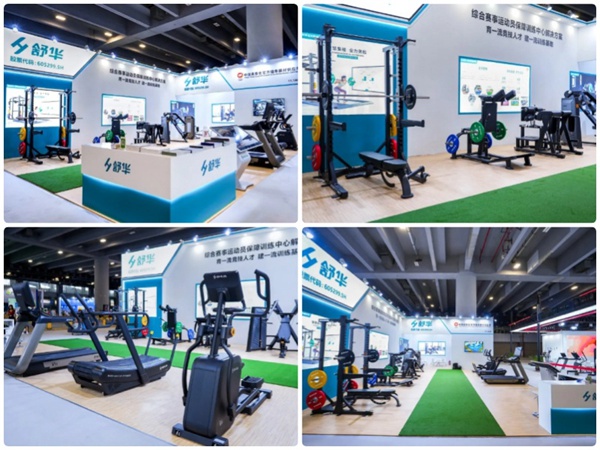 谈求吧体育展台精心布局,分为ESD有氧训练区、分动式力量训练区和综合体能训练区三大核心区域,全方位展示“综合赛事运动员保障训练中心解决方案”。